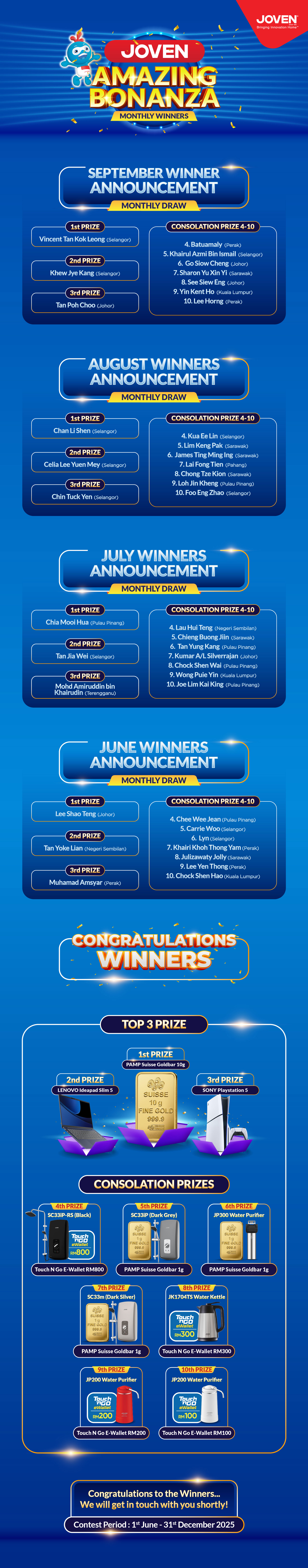 Joven Amazing Bonanza September 2025 Winners Announcement