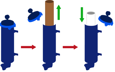 Change of cartridge can be done easily by lifting and removing the housing top.